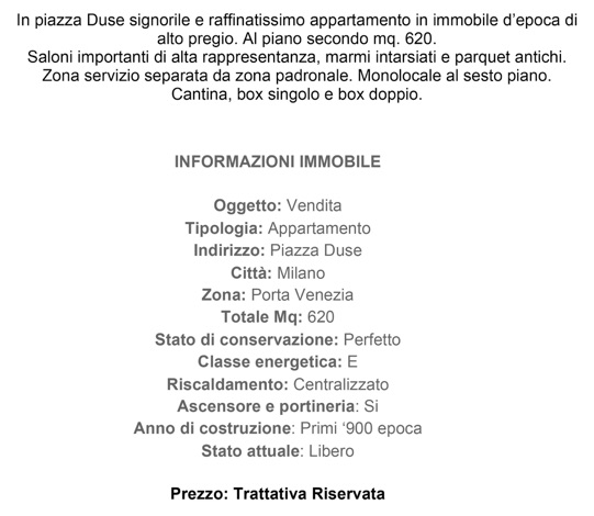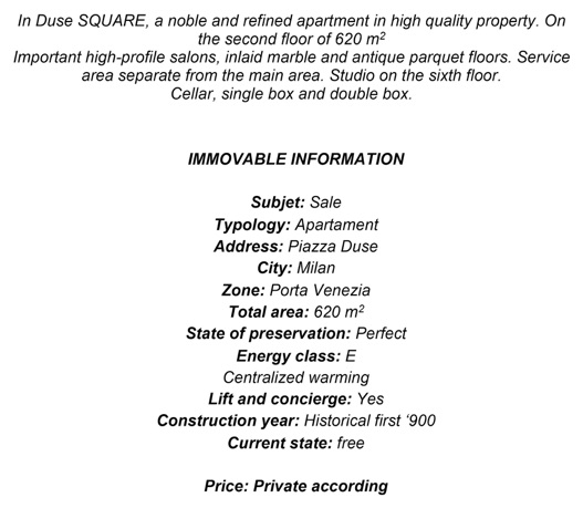 In piazza Duse signorile e raffinatissimo appartamento in immobile d’epoca di alto pregio. Al piano secondo mq. 620.